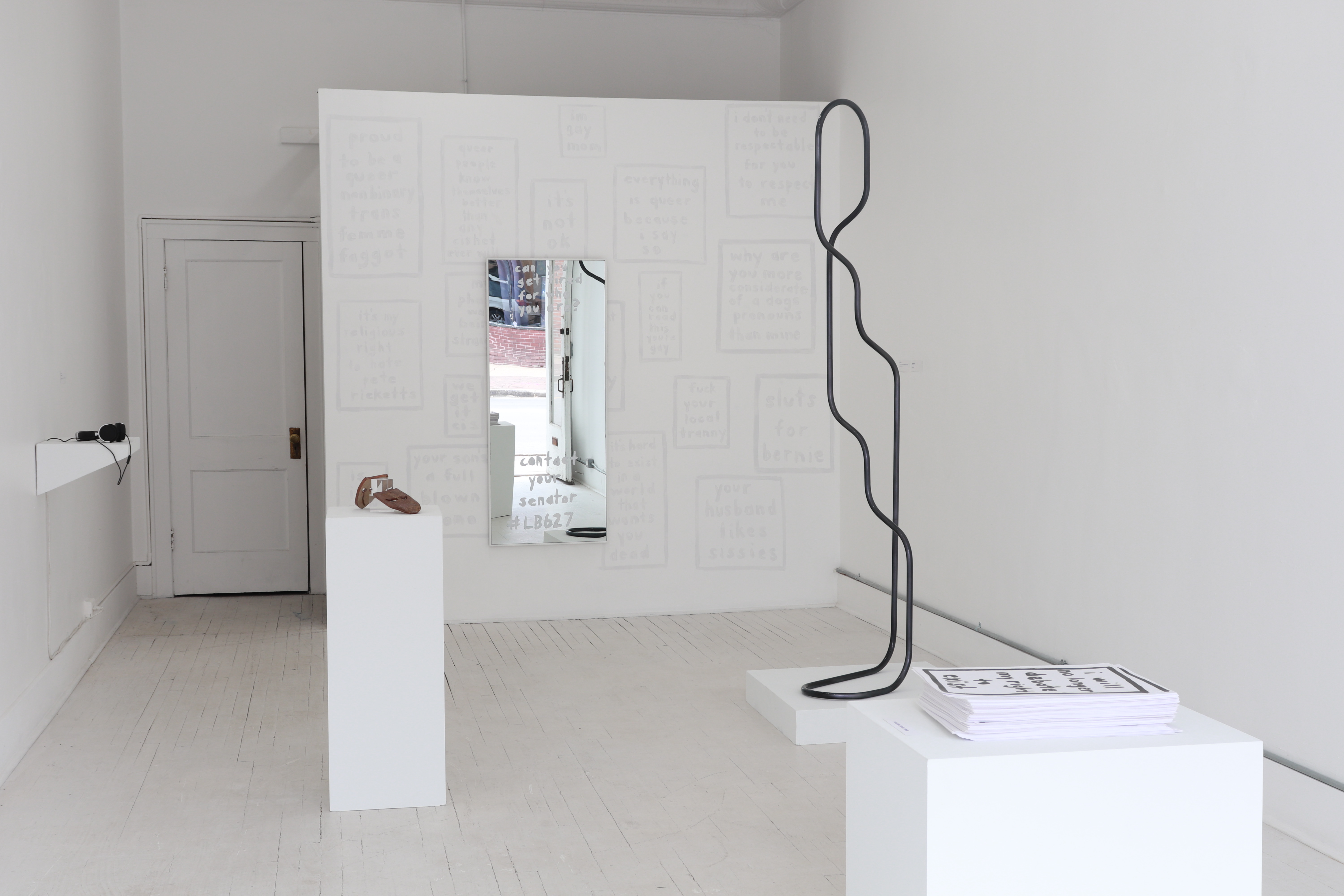 A guiding objective of this exhibition is to memorialize the ongoing and historic erasure of gender non conforming individuals through artistic gestures that privilege quietness, risk being overlooked, and sometimes eliminate objecthood all together. The rigid enforcement of gender expression requires that those operating outside its framework use subversive strategies and coded content to infect and infiltrate--stealthily opening discourse that challenges the status quo