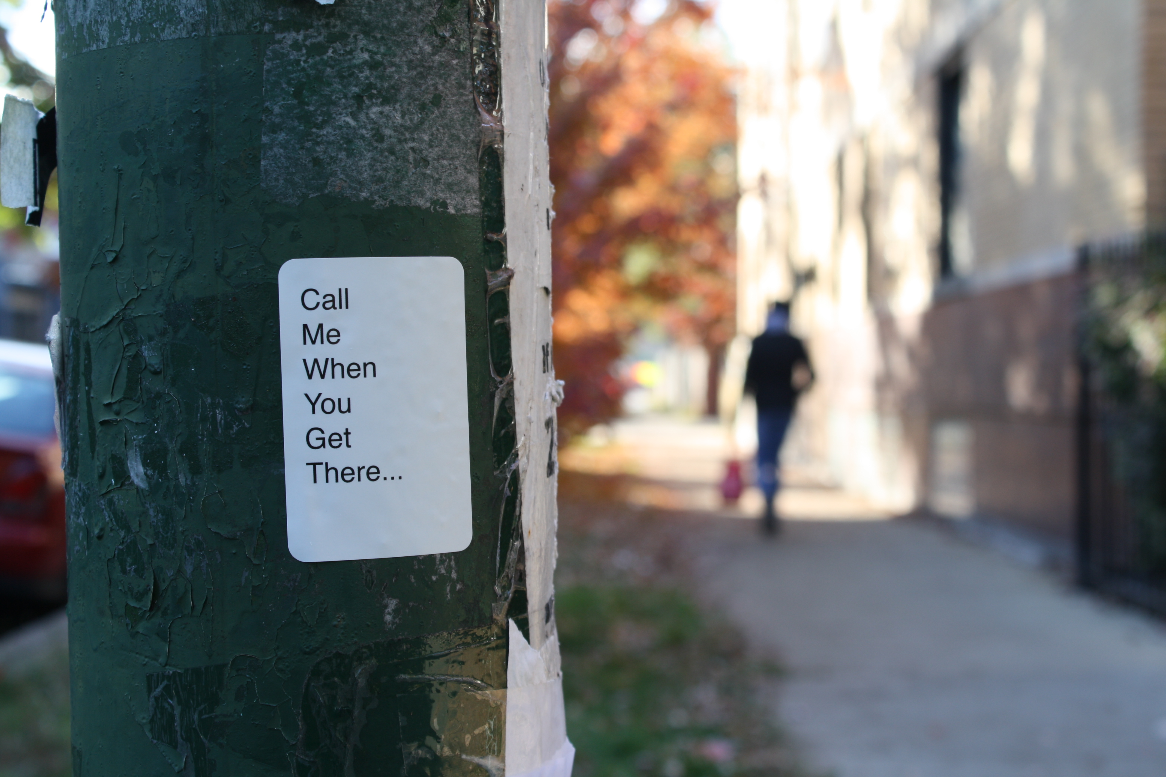 Get Home Safely, October 2018As a 6’6 gender nonconforming (GNC) person of color (POC), Terrell employs extra awareness when in public spaces because his body marks him as a target. The three phrases Terrell disributes throughout the city reflect the hyper-vigilance and interpersonal support the POC and GNC community enact while navigating public spaces. These heartwarming phrases embody the concerted care shared amongst Terrell’s community while simultaneously exposing the violence and ignorance they experience which has forged this language of protection and comfort.